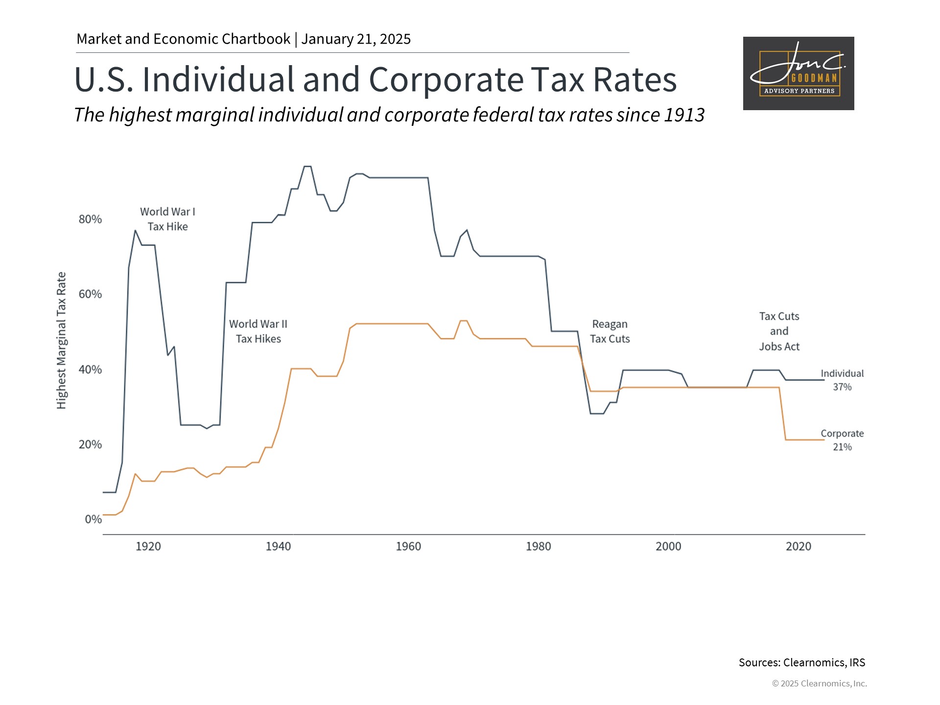 Current tax levels remain below historical norms. Given the trajectory of national debt, prudent planning should account for potential future rate adjustments.