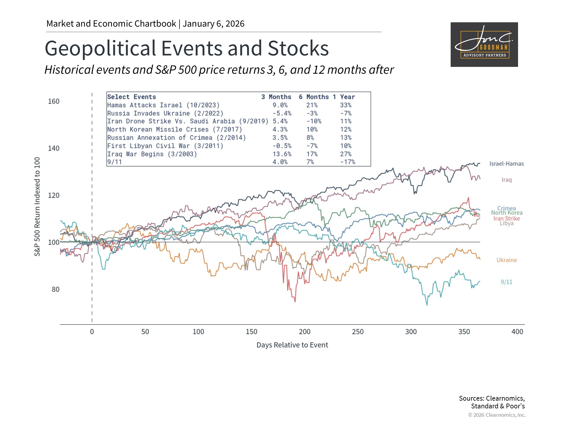 The bottom line? The detention of Venezuela’s leader constitutes a major geopolitical event with important humanitarian and regional consequences. Historical evidence demonstrates that investment portfolios constructed around long-term financial objectives can successfully weather geopolitical uncertainty.