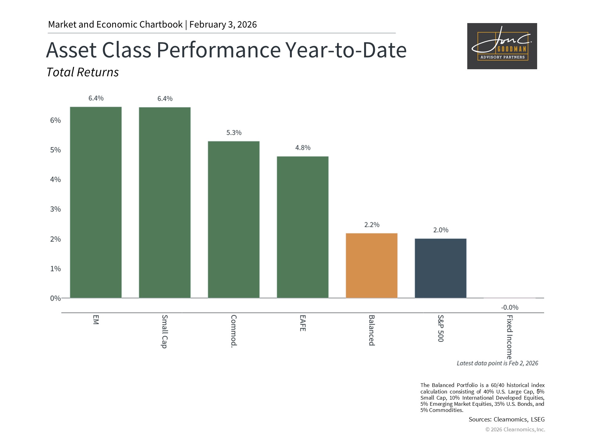 The bottom line? January witnessed market volatility stemming from geopolitical developments, Federal Reserve considerations, and additional factors. Nevertheless, markets demonstrated resilience and robust corporate earnings have supported major benchmarks in reaching fresh record highs, even as precious metals experienced declines. For long-term investors, this reinforces the significance of maintaining appropriate asset allocation aligned with financial objectives.